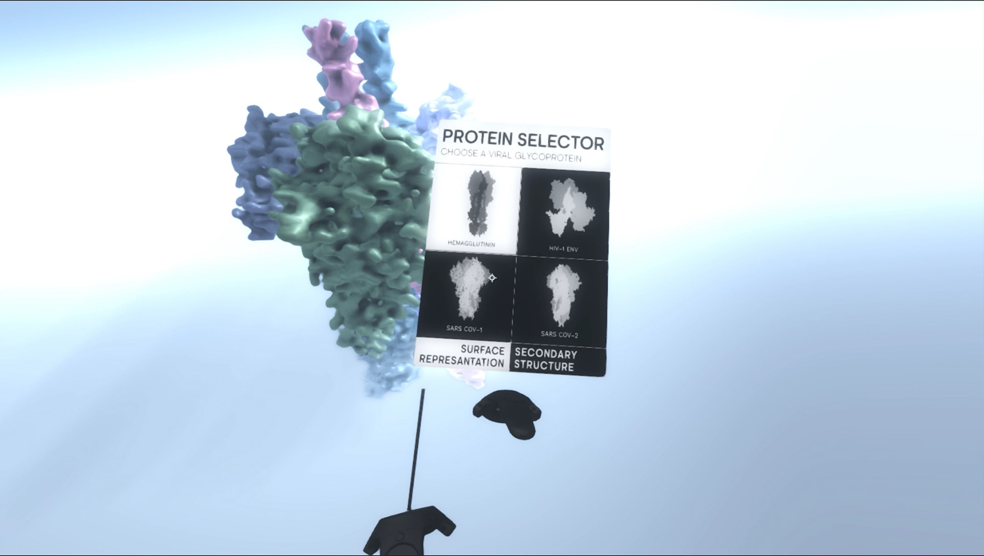 Micro Movements deals with the scientifically accurate visualization of protein structures based on the publicly available data sets of the Protein Data Bank (RCSB). The project thereby focuses on the visualization of conformational changes in viral proteins, more precisely viral glycoproteins. Proteins do not always have the same spatial structure. They shift their shapes among other things in order to bind to other proteins. This work makes it possible to explore the conformational changes of several envelope proteins in VR, fast-forward or rewind them, take a closer look at the shape-shifting of single amino acid chains and get information on the function of the whole protein or single parts.